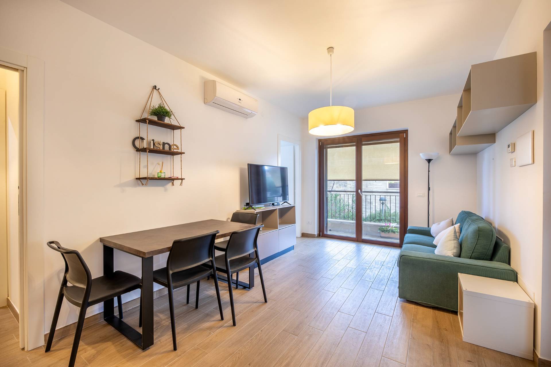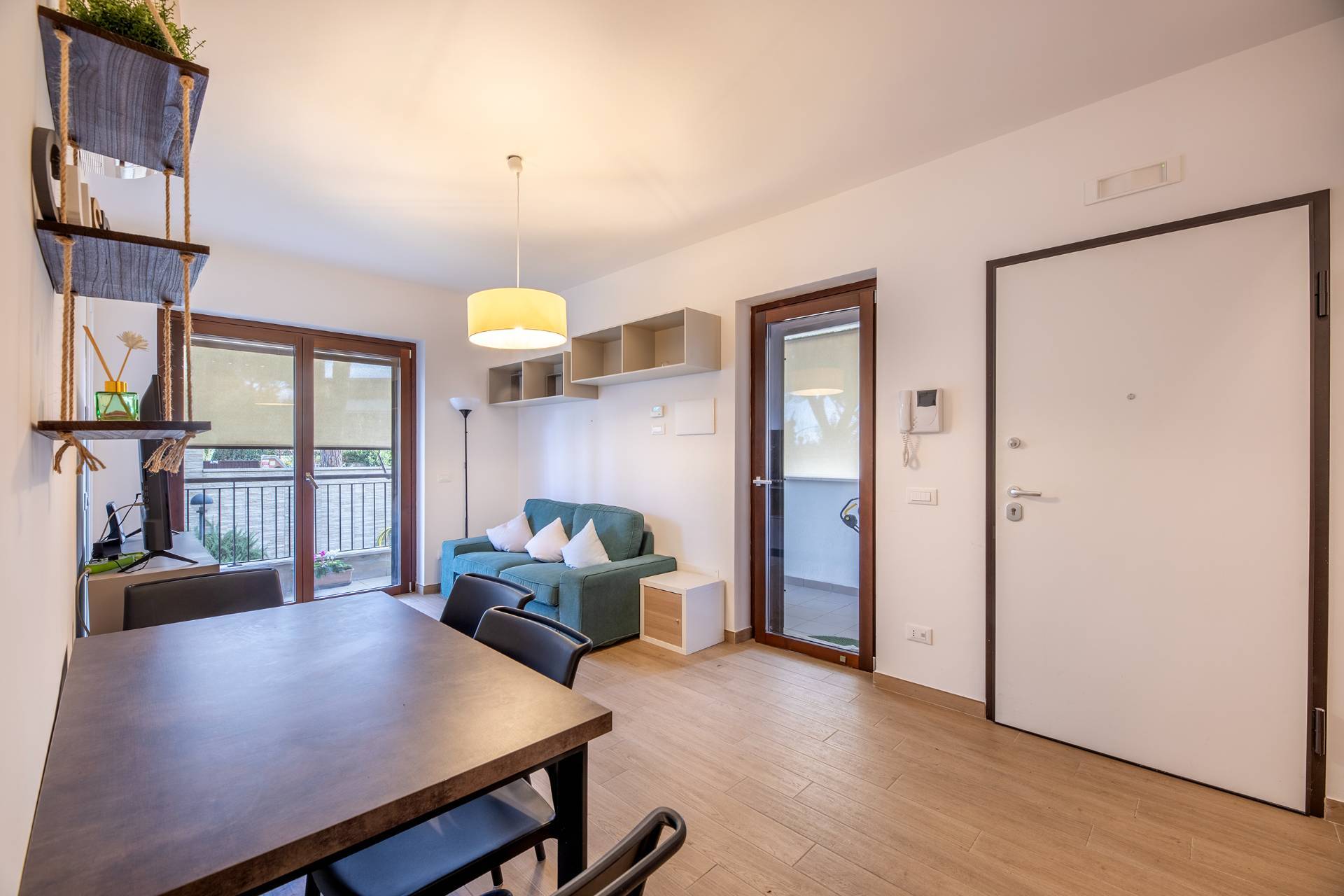 L'immobile è composto da soggiorno con angolo cottura, ampia camera matrimoniale, bagno, balcone, giardino di mq 30 e cantina. Dotato di aria condizionata, riscaldamento a pavimento, recupero acque piovane per uso irrigazione, pannelli solari. Classe energetica A3. Richiesta 285.000